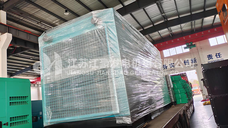 一臺400KW上柴低噪音柴油發電機組發貨,我公司工程師對機組進行了全面的出廠前檢測調試后,各項指標符合國家標準,下圖為機組出廠現場: