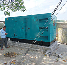 我公司生產的柴油發電機組,出廠前均經工廠調試驗收,合格后發往客戶現場。客戶準備好相應的材料后我公司派工程師到現場安裝調試。圖為江陰數據大廈一臺450KW上海乾能配恒聲機組調試現場: